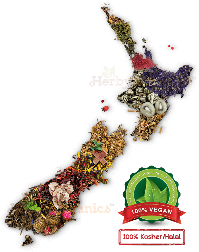100% VEGAN. 100% KOSHER/HALAL. NO PRESERVATIVES. NO SUGAR. NO CAFFEINE. NO COLORS. Made in New Zealand with local organic produce. HerbyOrganics (TM) presents you premium tea & herbal products using the best of New Zealand's natural Fruits, Herbs & Vegetables.